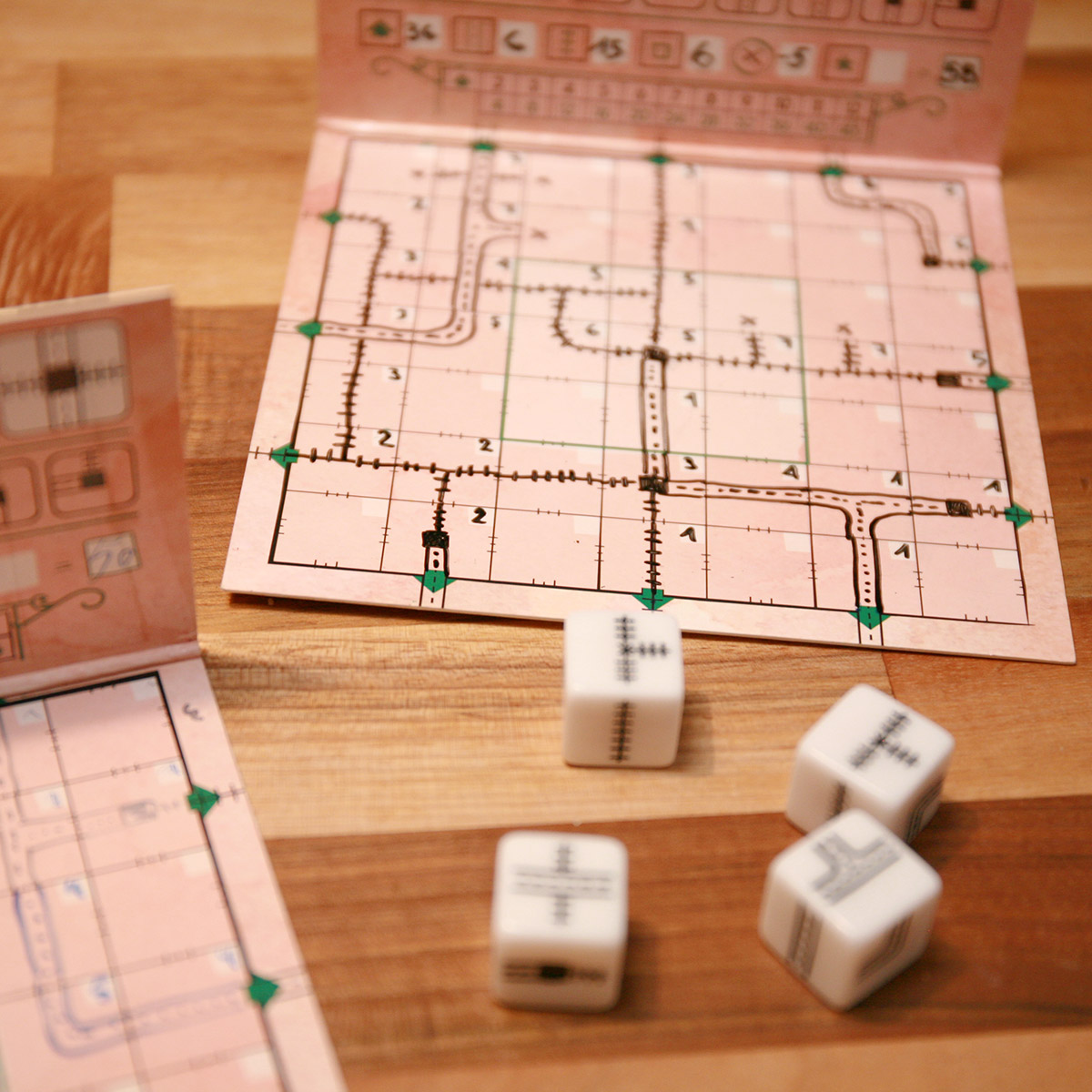 In jeder Runde wird gewürfelt und so bestimmt, welche Schienen und Strassen von allen eingebaut werden müssen. So hat das Spiel auch eine sehr gleichmässige Länge, egal wieviele mitspielen und theoretisch könnten sogar unendlich Leute mitspielen.