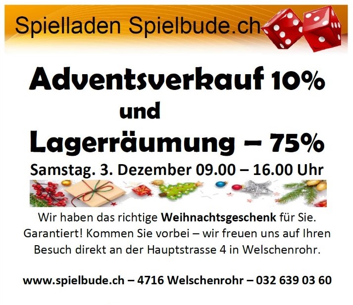 Heute findet nämlich in Welschenrohr der Adventsverkauf der Spielbude statt und wir planen das heutige Verlosungsspiel spontan dort einzukaufen.