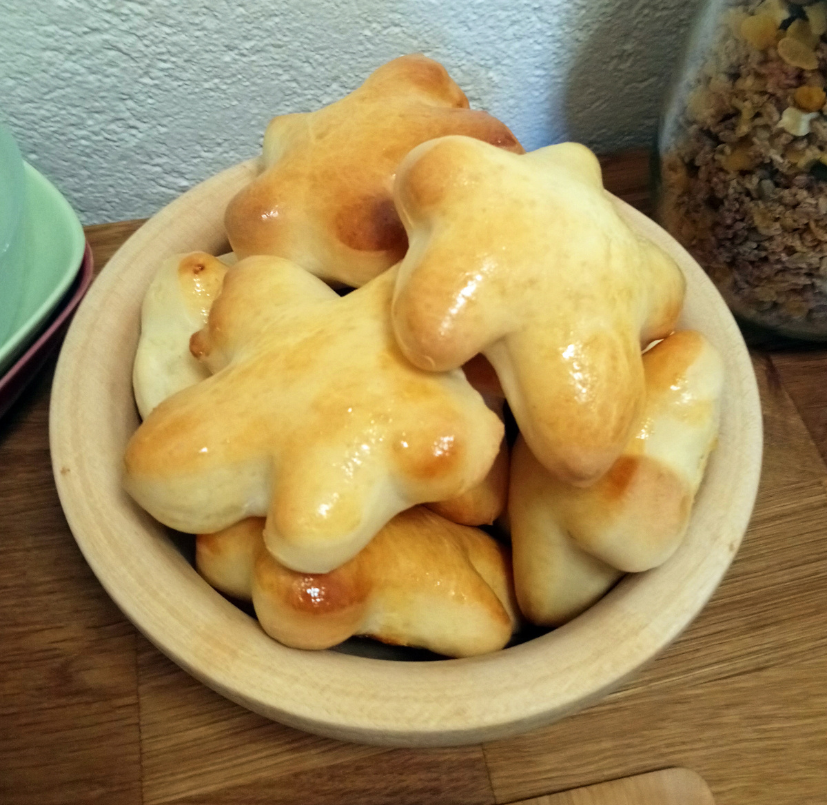Toll sehen auch Brötli aus Brot oder Zopfzeig aus: Teig ca. 2 cm dick auswallen und mit einem Meeple-Förmli ausstechen. Aufs Backblech legen, nochmals etwas aufgehen lassen und backen.