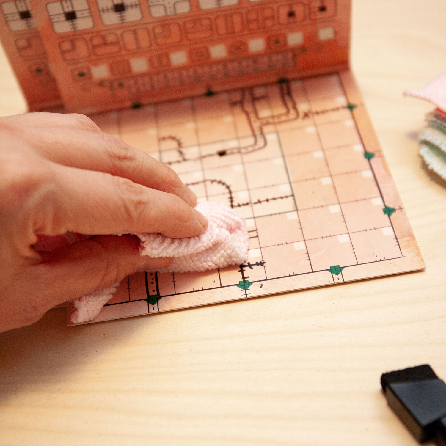 Ist das Spiel gespielt, gehts ans putzen... Eigentlich sollten diese Spiele ja "Roll, Write and Clean" heissen... Da das Reinigen der Karten, Sichtbildschirme und Tableaus doch auch seine Zeit benötigt. Das mitgelieferte Mini-Tüchlein oder der Radierer auf der Stiftekappe sind da allerdings leider schnell überfordert.